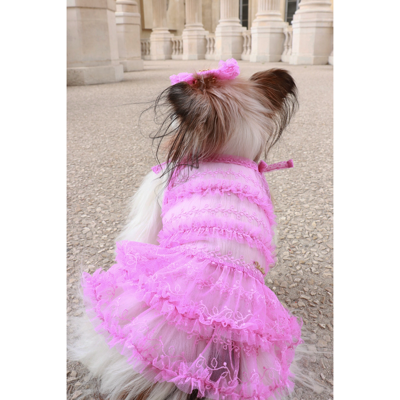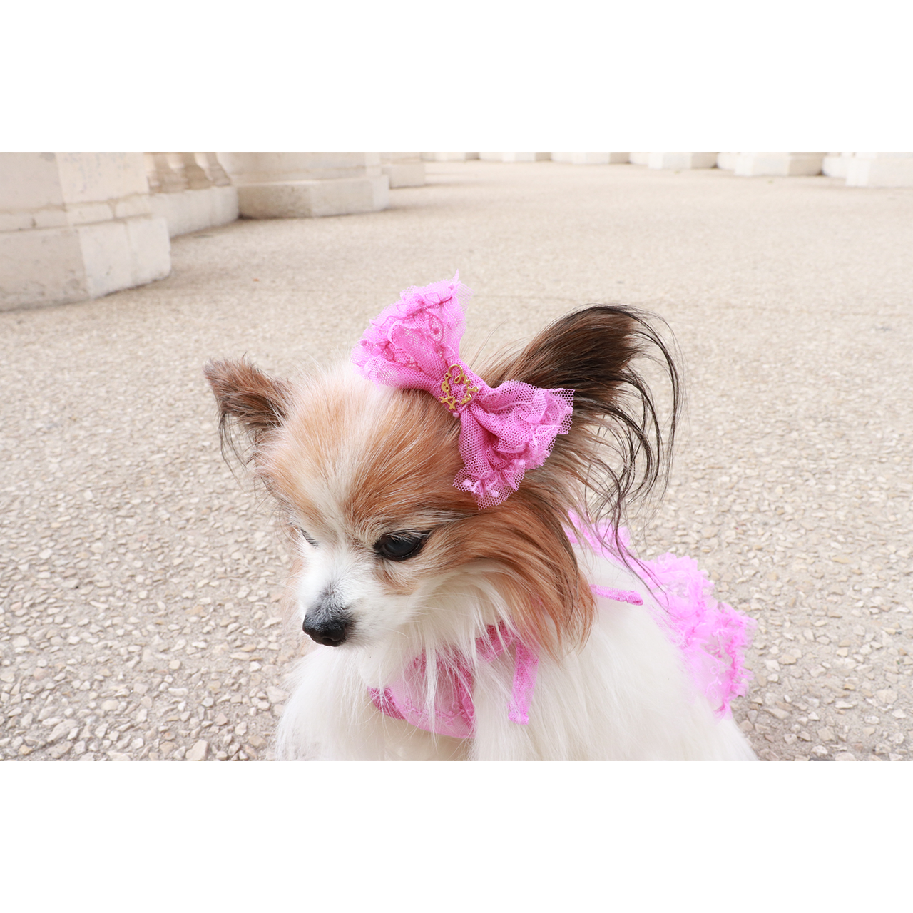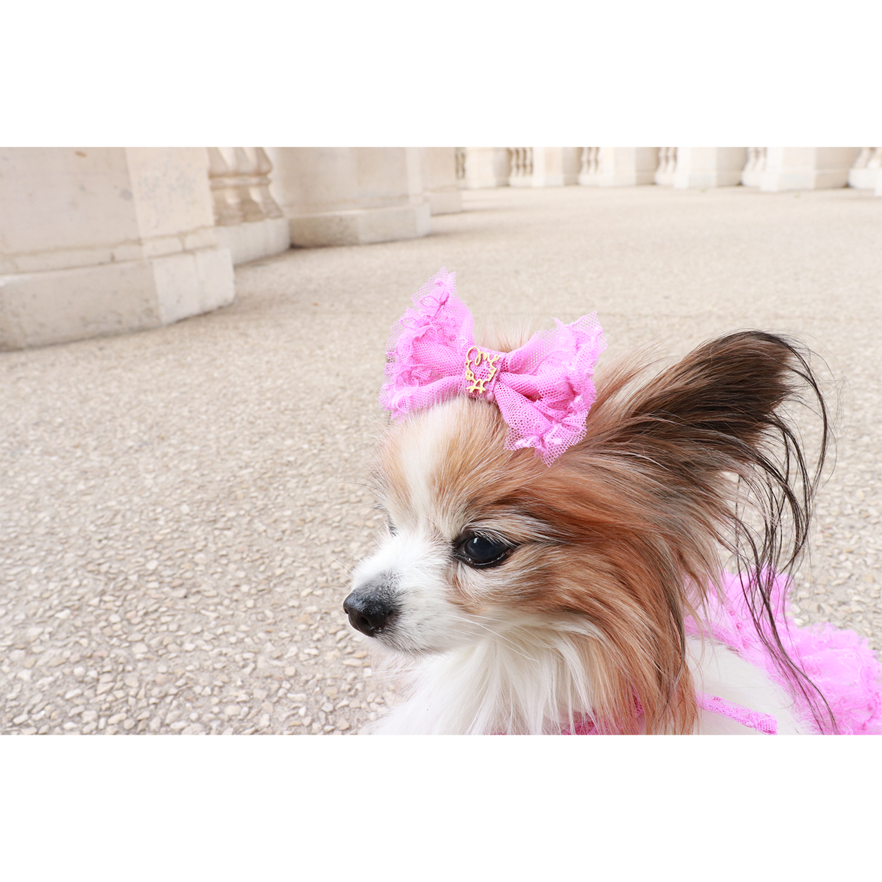 華やかなフリルとシアーの軽やかさが魅力のリボンバレッタ。お揃いのワンピースと組み合わせれば、全身統一された可愛らしいスタイルの完成です♪